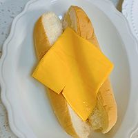 Cut the bread open, and cut the homemade pure meat ham sausage into quarters