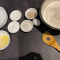 First stir the dry ingredients well, add water butter, knead the dough and cover with plastic wrap to rise for half an hour.