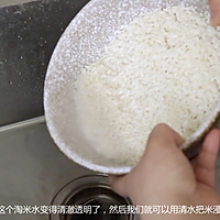Rinse the glutinous rice repeatedly with clean water until the water becomes clear.