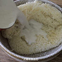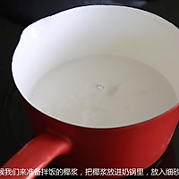Let’s cook a coconut milk while steaming rice. Add 25 grams of sugar and 3 grams of salt to 140 grams of coconut milk, heat over low heat until the sugar and salt melt, and the coconut milk can be removed from the heat with slight bubbles.