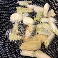 Add oil to a boil in a pot and turn to low heat, add peppercorns, peppercorns and grass fruit grains (crushed with the back of a grass fruit knife) through the oil, and use a slotted spoon to remove the seasoning box. Add ginger, garlic and green onion to the oil to remove the seasoning and sauté until fragrant.