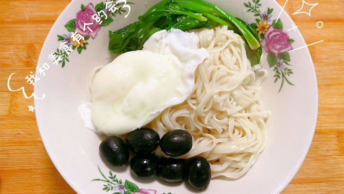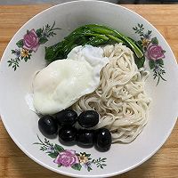 When the noodles are cooked, add greens and black olives, and finally add condiments according to your taste