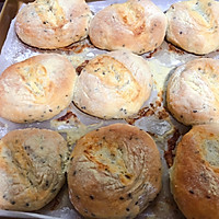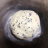 Add high-gluten flour, yeast, sugar, salt (salt and yeast separately, divide to both sides) and knead into a smooth dough with water and oil, then add black sesame seeds and knead well!