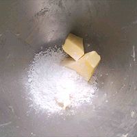 After the butter is softened, pour in the powdered sugar, beat until evenly and silky, add the whole egg mixture in three times and stir well.