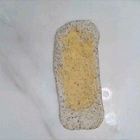 Take out the refrigerated loose dough, roll it out (the width does not exceed the width of the toast box), wrap it in the filling, and put it in the mold.