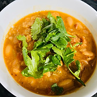 After stewing, take it out of the pot, chop the coriander and put it on the bean soup, add a little decoration, and you’re done! The bean soup has a thick and silky taste, slightly spicy and fragrant meat, bright color, and full of strong exotic style, it is definitely an excellent choice for weekend flavors!