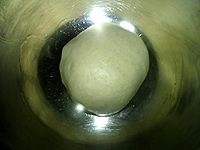 Pour the dough except the corn oil into a large bowl