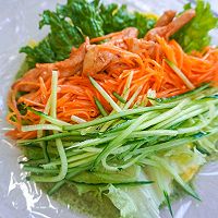 Prepare the ingredients. Pre-marinated chicken breast, cucumber, lettuce, carrots, eggs, milk.