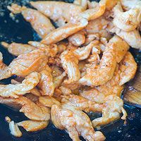 In another pan, add oil, heat the oil and stir-fry the Orleans chicken breast.