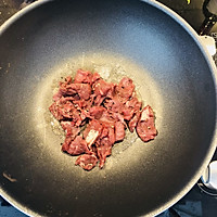 Put oil or butter in a hot pan, the oil is hot/the butter is bubbling, pour the meat in. Stir-fry
