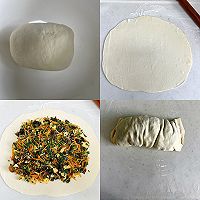 Add a little salt to the flour, mix the flour with cold water and noodles to form a hard dough, divide it into several doses after waking up for half an hour, dry it into a thin large noodle sheet, spread the prepared filling on it, then roll it up, seal it on both sides and push it to the middle