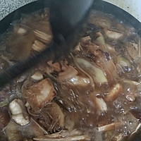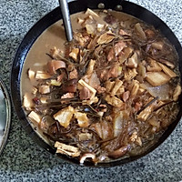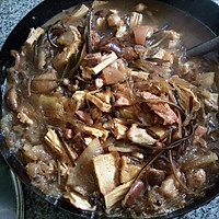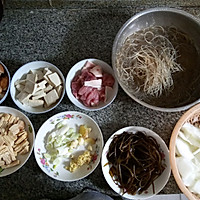 Then add fried tofu, bean curd, vermicelli, and 2 fennel. After boiling, taste sweet and salty, add salt as appropriate, add 2 teaspoons of monosodium glutamate, 1 bottle cap of sesame oil, and 1 teaspoon of thirteen spices, and start the pot when it tastes good.