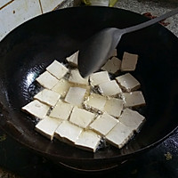 Remove the pot, pour the oil, and have more oil. Fry tofu.