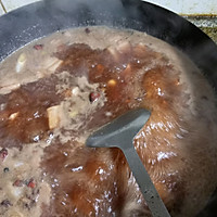 Base soup. Don’t pour the oil for frying the tofu, add a little oil, add peppercorns, fennel, high heat for half a minute, remove it, add 3 tablespoons of sweet noodle sauce, turn off the heat when adding, stir-fry for 30 seconds, add meat, stir-fry for 30 seconds, turn to high heat, stir-fry for 1 minute, add, green onion, ginger and garlic, stir-fry for 1 minute, continue with water. Turn to low heat and boil for about 20 minutes.