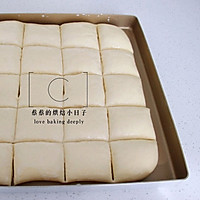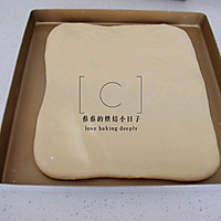 The rolled dough is placed in a non-stick baking dish for a second proofing. It can be placed in the fermentation box or oven to proof, temperature 35 degrees, humidity 80%, and proofing for 30 minutes. The oven does not have humidity to adjust, you can put a bowl of warm water to maintain some humidity. Proofing to about 1.5~2 times larger, observe the smooth surface, and gently press the surface will have a slow rebound.