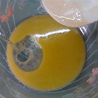 Add the egg mixture in batches, whip slowly to become a homogeneous batter, and whip quickly for another 5 minutes.