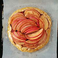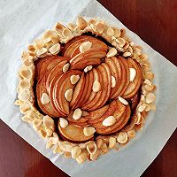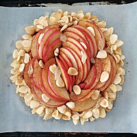 Then sprinkle an appropriate amount of almond slices around the pie crust and apple slices, sprinkle a few yellow rock sugar, move to the middle layer of the oven, and bake at 175°C for 50 minutes.