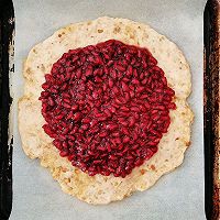 Spread the pomegranate jam in the middle of the crust, in a circle, leaving a circle around it;