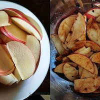 Cut into thin slices and put them in a container, add 20 grams of brown sugar powder, 1 tablespoon of cinnamon powder, and 1 tablespoon of cornstarch to marinate and set aside.