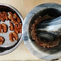 Make the pie crust 50 g of dried walnuts ground and crushed; (If you don’t like the texture of grains, you can use a wall breaker to make powder)