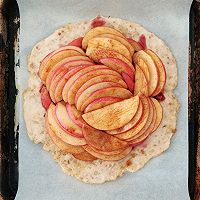 Gather the crust around the middle, half-surround the apple slices, brush with egg liquid to make the color look better;