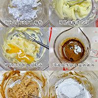 In the process of bread fermentation, we will make coffee Mexican sauce, the butter is softened at room temperature in advance, add powdered sugar and stir well, add egg liquid in three times and stir well, add coffee liquid and stir well, sift in low-gluten flour, stir evenly with a spatula and put it in a piping bag for later use.