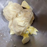 Except for the butter, put all the dough ingredients into the mixing bucket of the chef machine, and mix the ingredients into a ball with 3 gears