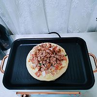 Spread pizza sauce and cheese on the pizza crust, add some of your favorite ingredients and put it in a cooking pot