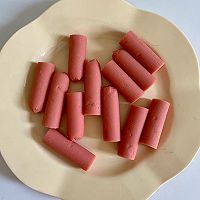 Prepare a ham sausage cut into three sections for later use