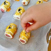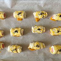 Brush the surface with egg yolk liquid and sprinkle with black sesame seeds
