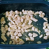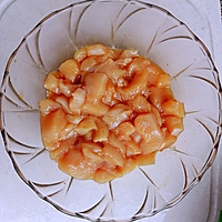 Cut the chicken breast into pieces with salt and marinate in oyster sauce