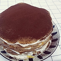 One layer of crust, one layer of cream, one layer of mango, and so on