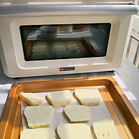 Cut the steamed buns into thin slices of about 0.5 mm and place them on a baking sheet lined with oil paper