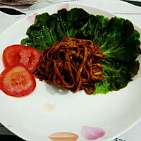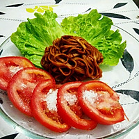 1. Cook the noodles in hot water 2. Remove from the surface with cold water 3 tablespoons of hot sauce, pepper, multi-flavored powder, a little soy sauce, sugar, stir! 4. Take out the plate and lay out the lettuce, it is best to remove the roots to leave the leaves beautiful, and cover the noodles with the part where the lettuce joins. 5 Wash and cut the tomatoes into pieces, spread them and sprinkle with sugar 6Sprinkle with chives and serve!