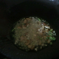 Stir-fry the fat until golden brown, add diced green onions and stir-fry until fragrant.