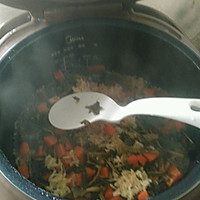 Pour it into the rice cooker pot, mix, and add more oil if you feel that there is not enough oil.