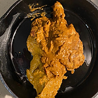 In a saucepan, use a little vegetable oil, tear open the bag, and pour the duck leg into it with the curry paste.
