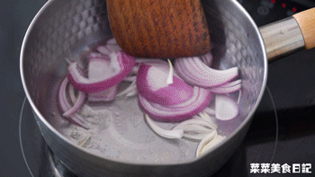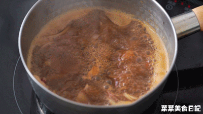Heat the oil in a pan, add shredded onion and stir-fry until soft, add 2 small pieces of curry cubes, 1/2 teaspoon of matsutake fresh vegetable powder, 1 teaspoon of sugar, pour in 600-800ml of boiling water, cook until the curry melts, bring the water to a boil and cook for 2 minutes