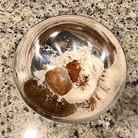 The next morning, mix flour, brown sugar, cinnamon powder, nutmeg.
