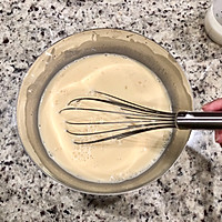 Beat 6 eggs, add milk, whipped cream, white sugar, brown sugar, and vanilla flavor.