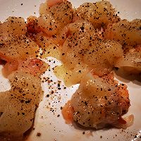 Cut into large pieces 1cm thick and marinate with salt and pepper for a few minutes.