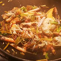 Blanch the shrimp tongs and claws in warm water for one minute and drain the water. Stir-fry in a pot of ingredients.