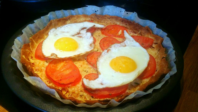 Fry two eggs at the same time, bake and spread on top (egg yolk is best half-raw). It’s delicious when eaten hot or cold.