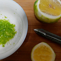 There are no yellow lemons at home, only clear lemons. There is no special tool for peeling lemon shavings, try this one, start peeling, chopping little by little. Later, scrape the serrated parts little by little, and the ends are very broken and broken. I cut off a little more lemon and squeezed some lemon juice. Then add a little caster sugar.