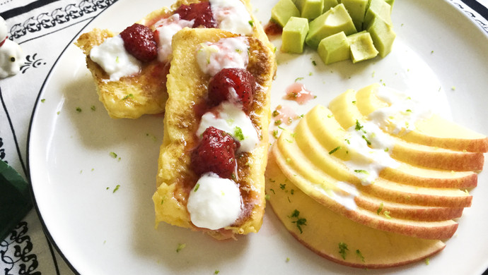 1. When frying toast slices, just put a little oil in the pot, and breakfast should not be too greasy. 2. Fruits and jams can be added according to your taste.