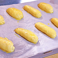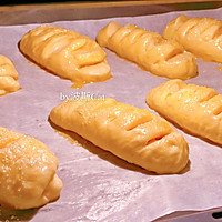 The last three fermentations are placed in the oven at 40 degrees for 15 minutes, and then sprinkled with a little coarse sugar after fermentation, because some coarse sugar may melt slightly during fermentation. (This time, I smeared the egg mixture, cut the bread opening, and fermented it three times, in order to make the bread bigger and more cracked.) If you apply the egg liquid after fermentation, you can cut the opening and sprinkle coarse sugar, but the crack after baking is not so big)