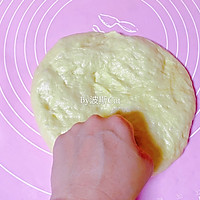 Knead until it is relatively even and smooth, add butter and continue to knead until smooth, without kneading the glove film