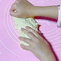 Knead the dough to the mine exhibition stage with the technique of rubbing clothes, that is, the dough is formed, and it has not yet reached the glove film. This is the daughter’s hand kneading the dough