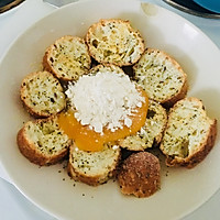 Press it into a cake, or make a ball, fry it in butter, and the eggs on both sides will turn golden brown. Baguettes need to be floured less in the first step, and after frying, they pursue a crispier texture.
