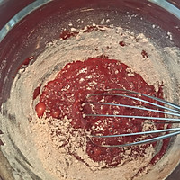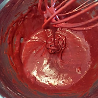 Add red velvet liquid, vanilla extract, lemon juice, and salt and mix well